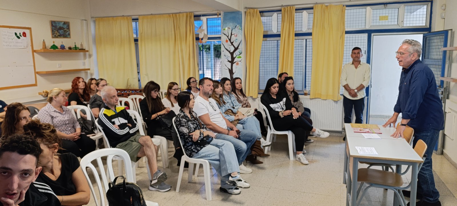 Στις 22 Οκτωβρίου 2025 πραγματοποιήθηκε συνάντηση των Γονέων και Κηδεμόνων μαθητών/τριών της Α΄ Τάξης για την «Oμαλή μετάβαση από το Δημοτικό στο Γυμνάσιο». Εκπαιδευτικοί του Σχολείου μας παρουσίασαν τη φιλοσοφία των νέων γνωστικών αντικειμένων. Οι γονείς ενημερώθηκαν για τη νέα σχολική πραγματικότητα που αντιμετωπίζουν τα παιδιά τους και για τις απαιτήσεις του Γυμνασίου. Ακολούθησε εποικοδομητική συζήτηση και οι γονείς έθεσαν τις σκέψεις και τους προβληματισμούς τους.